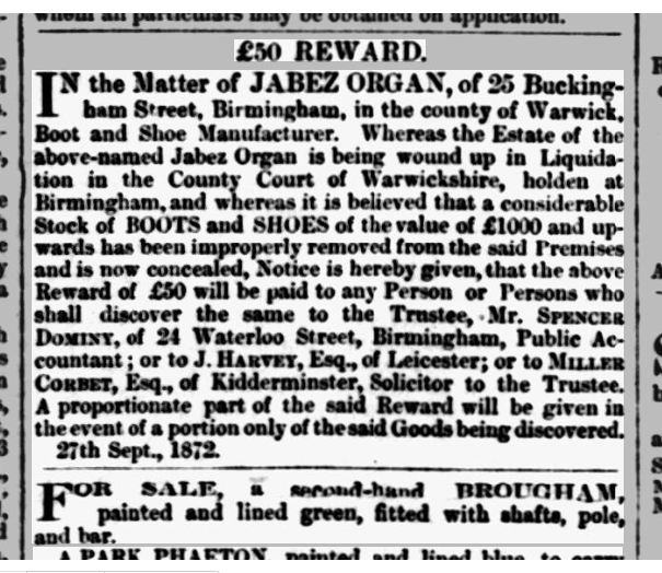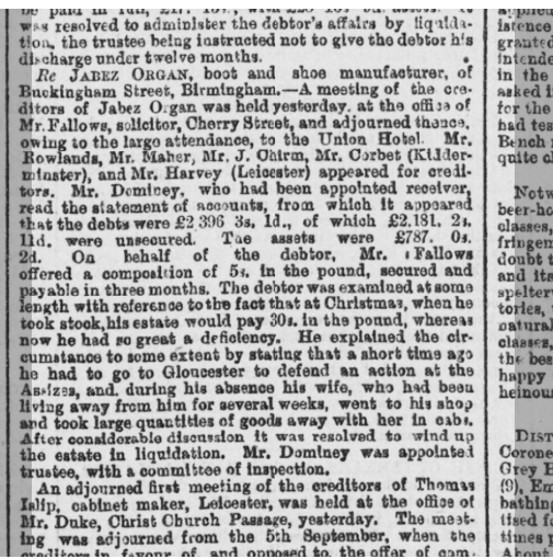 Later that year, Jabez filed for bankruptcy, as reported in the Birmingham Post.