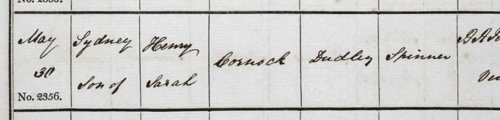 Henry, another son, followed soon after, as can be seen from the baptism of his son Sydney at St Mary’s, Wotton under Edge, Gloucestershire. His residence is stated as Dudley, not far from Cradley.