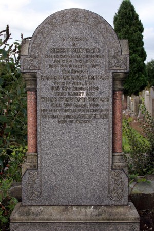 Then, in 1865, she married Robert Monteith, a manufacturer, in Edinburgh. They lived in Tillycoultry, Clackmannanshire and had 4 children. Robert died in 1874. Caroline died in 1906, aged 68, and has a magnificent tombstone in Tillicoultry churchyard. In common with many Scots tombstones, her maiden name is included. Also, the Payne name was part of her two eldest sons’ name – William Sidney Payne and Robert Alfred Payne Monteath.