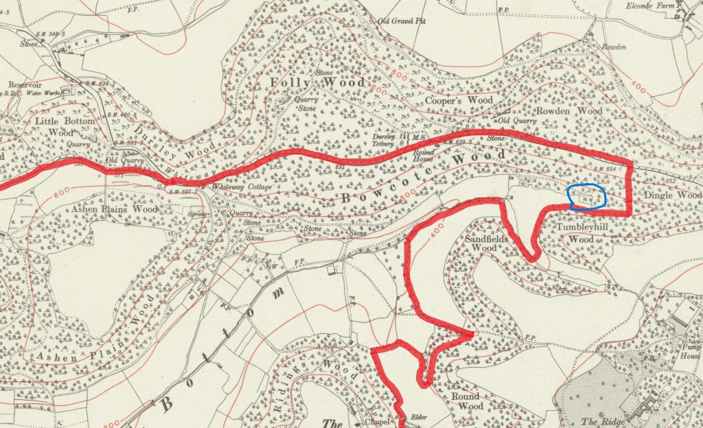 At the time of the ’41 Census, Harriet was in Waterley Bottom, with Diana (aged 50) and Rebecca (aged 18). It was a cottage in the remotest eastern end of the parish, where the wooded slopes came together, number 1156 on the Tithe Apportionment. Owned by George Bengough, who owned The Ridge House nearby, it was leased to Philip Timbrell. By the time that the OS Map was drawn up in 1924, it has disappeared and the site overgrown with trees.