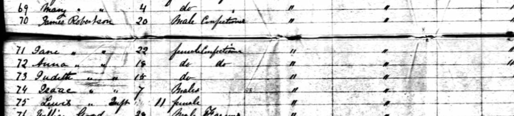 This is the passenger list for the SS Manhattan, arriving in New York in 1857. I can only assume that Sarah, her elder brother Thomas William, and their father arrived previously. Six of the siblings died before the crossing.