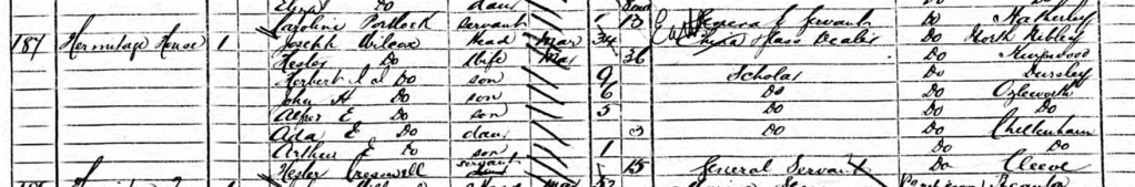 In December 1890, Alfred and Fanny married. Jane had died 3 months previously. In 1891, Alfred, still a butler, recorded as married, was living on Colman (?) street in Croydon. In the same was house was Catherine Morse, a 25-year-old housemaid. Unfortunately I can find no other trace of her, other than this census. Fanny, describing herself as a widow, is ‘living on her own means’ in Tetbury, with her niece.