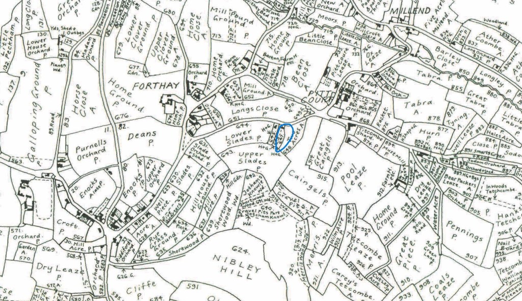 In 1841, William and Charlotte Martin were living in the house circled below on the Tithe map. In the household were William’s mother, Constant, their 6 children, and the illegitimate daughter of their eldest daughter, Elizabeth, who was called Ann in the ’41 Census. Confusingly, her aunt Ann, aged 6, was also in the household. All the elder children had been baptised at St Martins church in the village, but, after 1832, they last 3 children were baptised in the Tabernacle in the village.